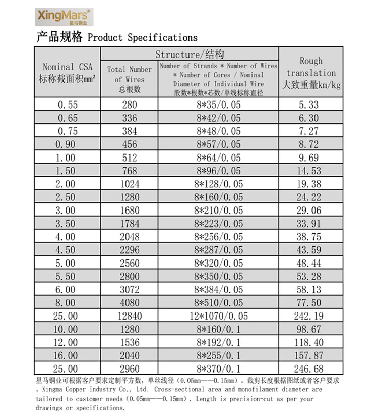4. 定制灵活,按需匹配:支持全参数定制——标称截面积(平方数)、单丝线径(0.05mm-0.15mm)、裁剪长度(按图纸/客户需求)、编织锭数(8锭/12锭选配),完美贴合个性化场景。